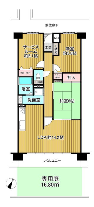 | 専用庭 | 16.80u(5.08坪) | 間取り | 2SLDK |